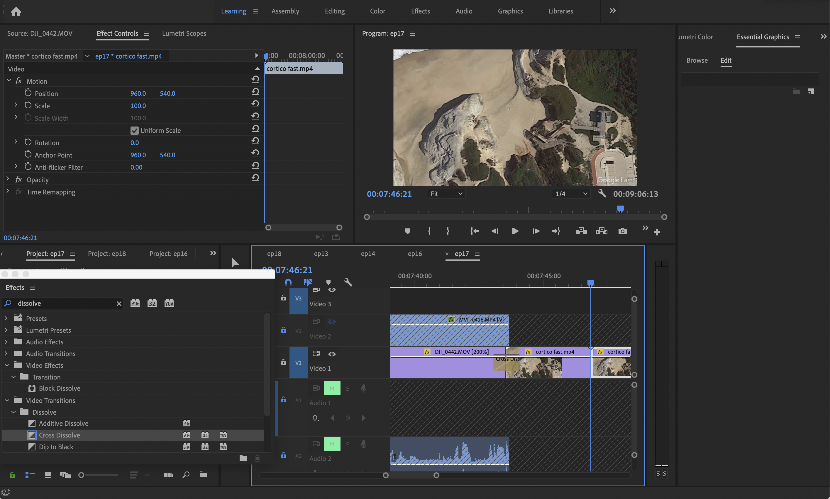 I am new to Premiere and working with Google Earth Pro footage. The footage is 1920x1080, same size as the clip. I may have clicked on "Set to frame size" and I don't think it would have made a difference. At the end of a clip, I add a frame hold. Both clips show motion scale at 100% and yet the size is different: the video is zoomed in, the frame hold is at "real" 100% as shown by the Google Earth watermark at the lower left: