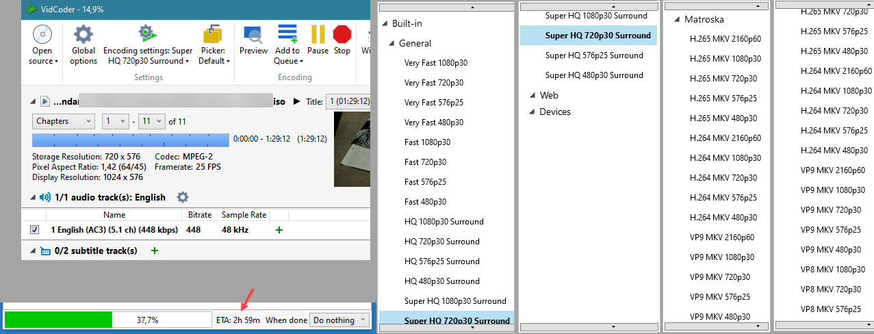 VidCoder (currently running converting an .iso file, don't know yet what comes out)