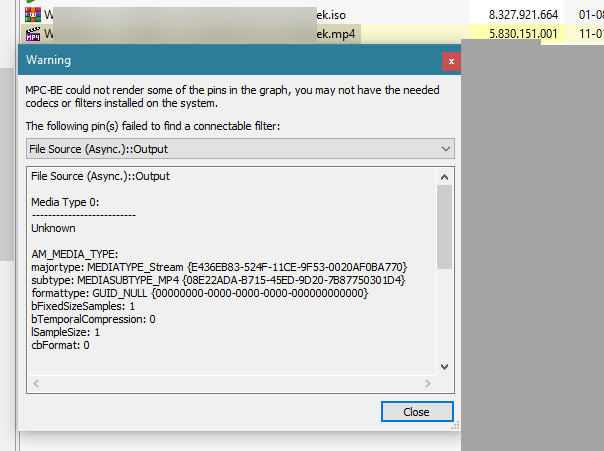 Another attempt with xMediaRecode resulted in a file that could not be played (see below)