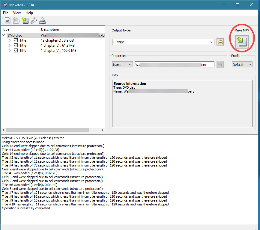 Beware that some discs don't have a proper title and will default to d:/DVD_VOLUME or some other generic name and you have to be careful not to overwrite previous remux. You'll be prompted before an overwrite of an existing duplicate file is attempted.