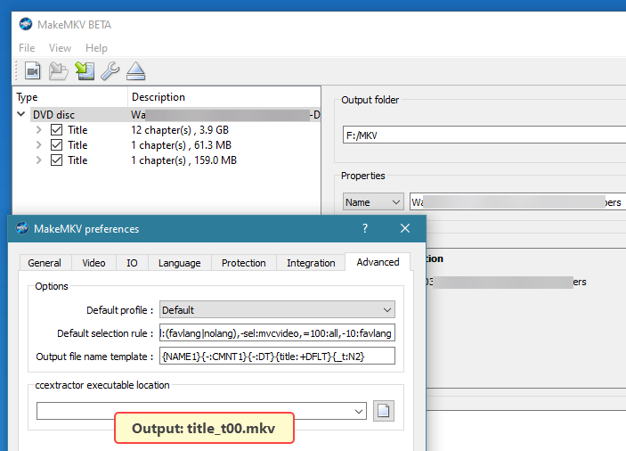 As for DVD iso files and naming: one has to enable 'Expert' and then go into 'Advanced' tab and paste the file name there in order to avoid something like title_t00.mkv.