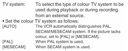 Most of 90's and 2000's French VCR's handle both SECAM and PAL without any problems, JVC's have the extension MS at the end of the model such as HR-S9600MS. Early models supported SECAM only a.k.a SECAM-L.