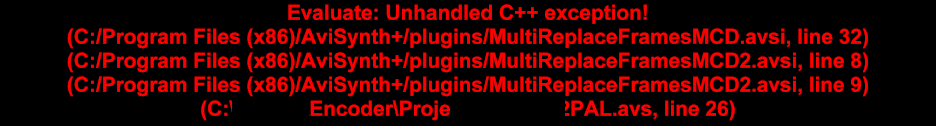 The script does something like the following:Code:function MultiReplaceFramesMCD(clip sauce, int_array mapping) { sauce = default(sauce, last) mapping = default(mapping, [0]) for(i = 0, ArraySize(mapping) - 1){ sauce = ReplaceFramesMCD(sauce, mapping[i]) } return sauce } function ReplaceFramesMCD(clip Source, int N, int "X") { # N is number of the 1st frame in Source that needs replacing. # X is total number of frames to replace #e.g. RX(101, 5) would replace 101,102,103,104,105 , by using 100 and 106 as reference points for mflowfps interpolation Source = default(Source, last) N = default(N, 0) X = default(X, 1) start=Source.trim(N-1,-1) #one good frame before, used for interpolation reference point end=Source.trim(N+X,-1) #one good frame after, used for interpolation reference point start+end AssumeFPS(1) #temporarily FPS=1 to use mflowfps super = MSuper() backward_vec = MAnalyse(super, isb = true) forward_vec = MAnalyse(super, isb = false) MFlowFps(super, backward_vec, forward_vec, blend=false, num=X+1, den=1) #num=X+1 AssumeFPS(FrameRate(Source)) #return back to normal source framerate for joining Trim(1, framecount-1) #trim ends, leaving replacement frames Source.trim(0,-N) ++ last ++ Source.trim(N+X+1,0) }
