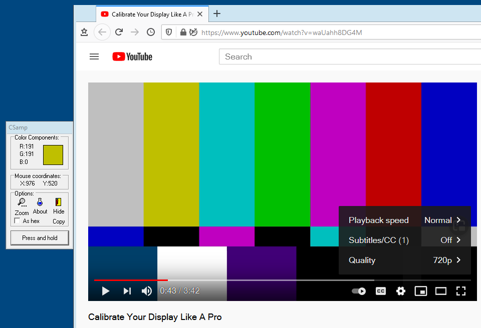 I uploaded a test pattern to YouTube which not only has the correct RP 219 colors for 75% bars, which are most commonly used, but has text indicators of the values they are supposed to be. Either YouTube or Chrome is doing something to alter the colors. They're accurate when viewed with VLC on my machine. Either YouTube or the browser is messing them up. Now Chrome won't open my local mp4 file so I can isolate and test Chrome's color rendition.