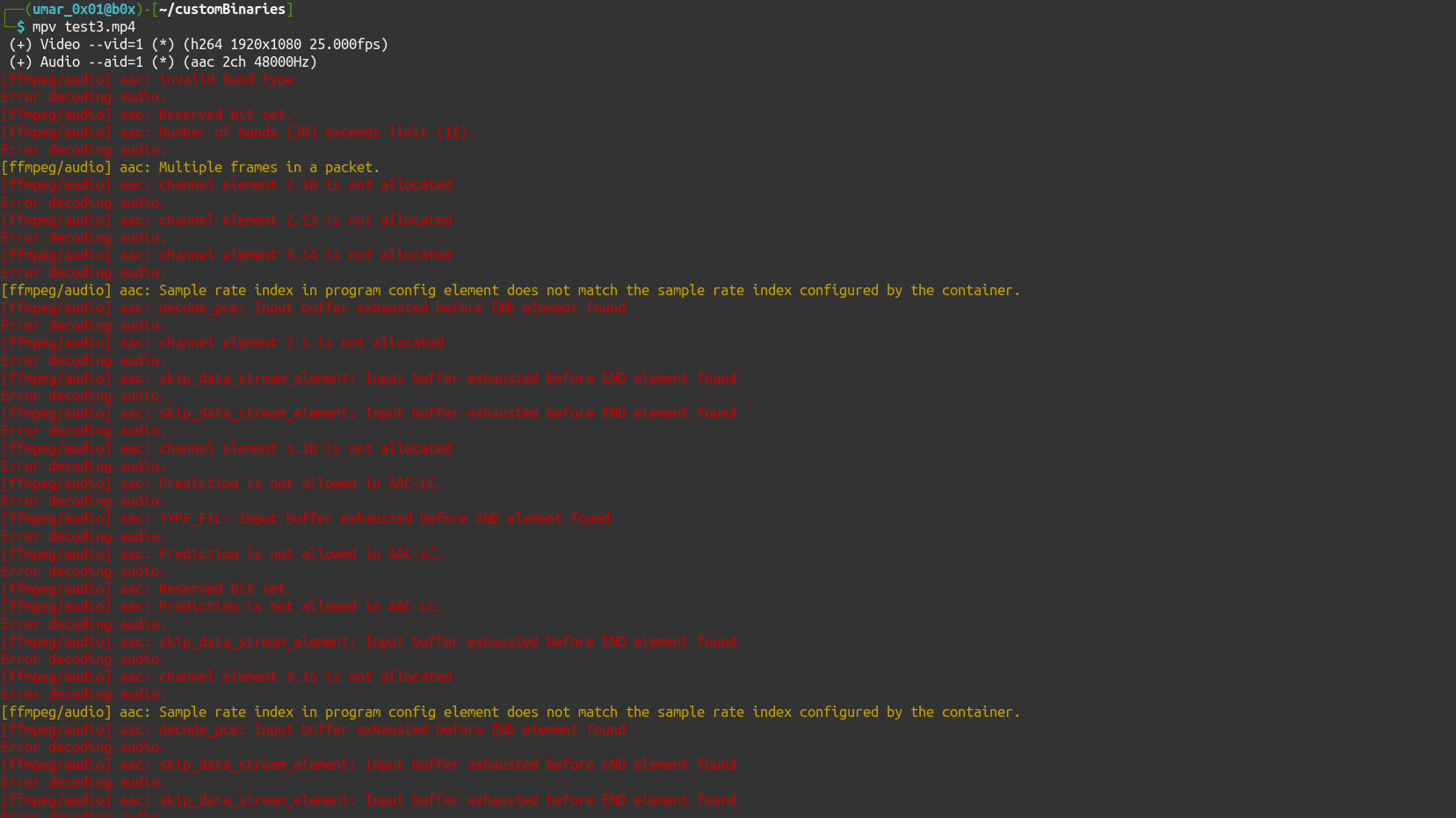 Hello thanks i see the problem i think ffmpeg merged the audio and video file into 1 file thats not gonna work u wont be able to play that video so it is a bad output let ffmpeg idownload video and audio seperate without merging them after that u can decrypt it without problems
