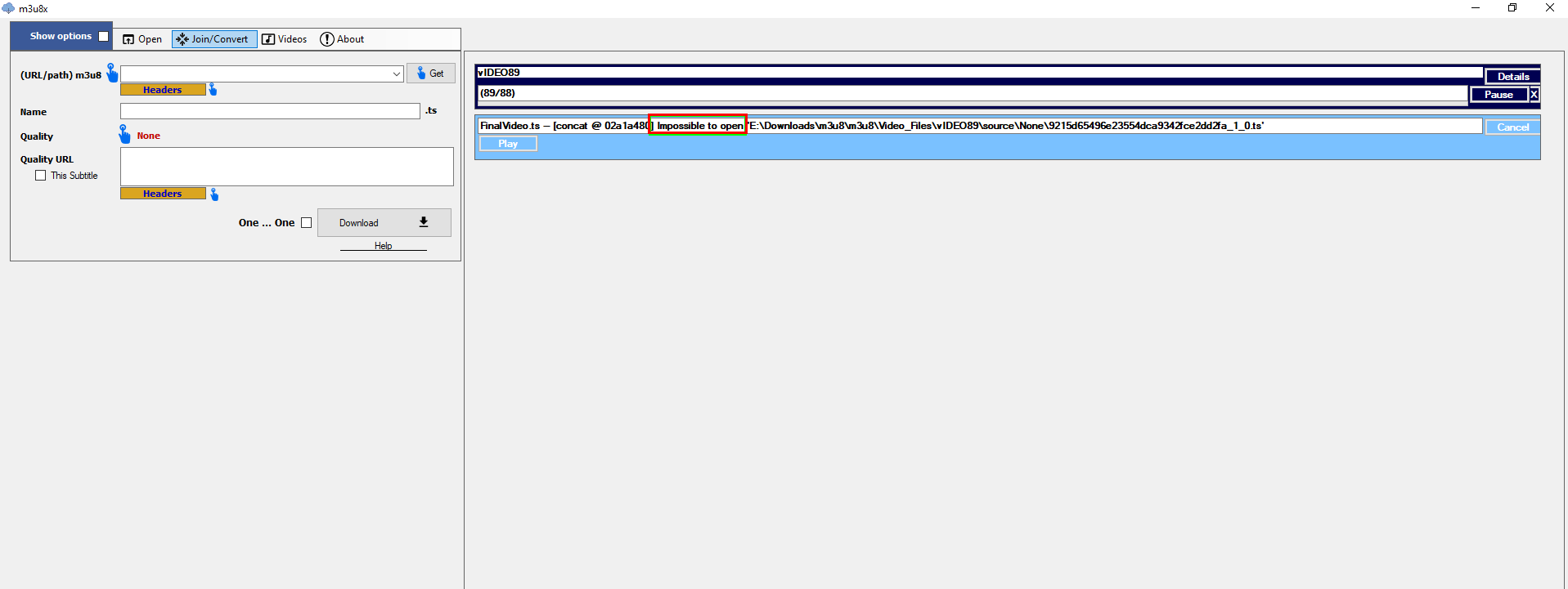 the problem is that the program cannot download the key file. without this file it is not possible to open or decrypt the .ts files.