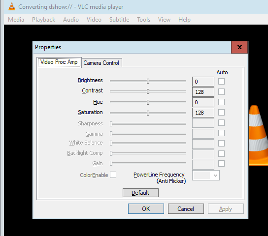 Thanks. I found the video proc amp in VirtualDub under "Video->Capture Filter.