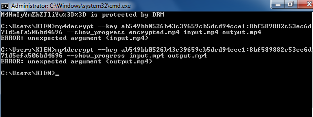 try and post here your commentCode:mp4decrypt --key <id>:<k> --show-progress encrypted.mp4 <input> <output>