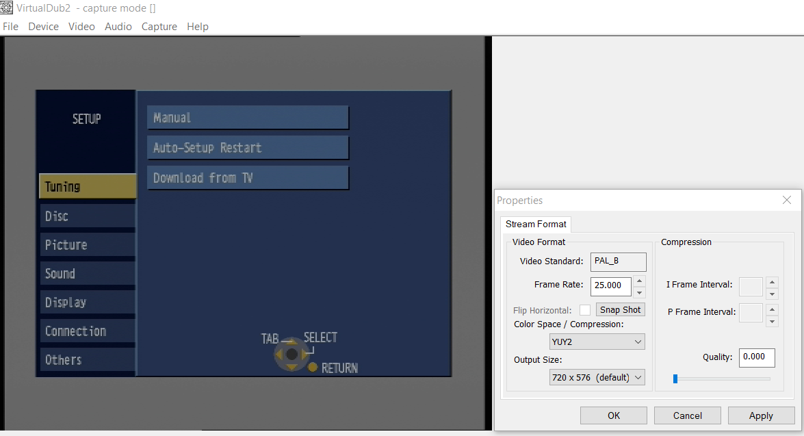 I noticed you have source set as PAL-B. Mine is set at PAL-I. Whether or not that makes any difference*. And I'm on Win7