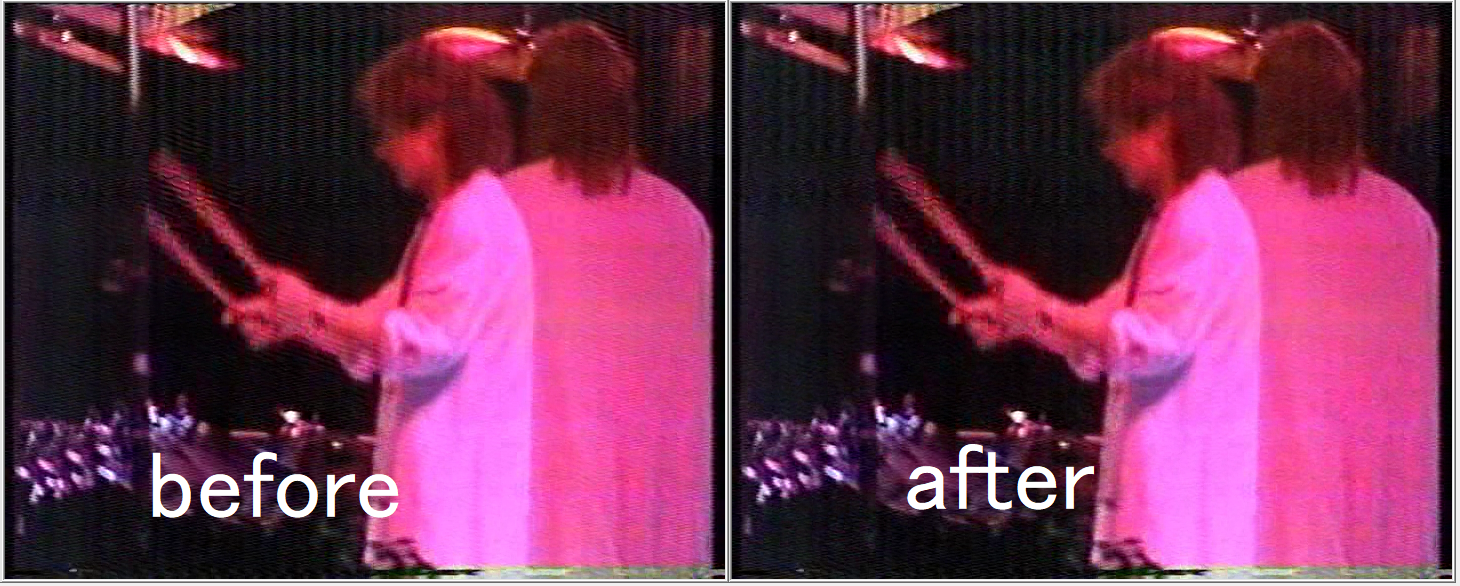 This is the code I was using for that frame.Code:FFVideoSource("example.mpg") AssumeTFF() ConvertToYV12(interlaced=true) SeparateFields() #Defreq(info=true) Defreq(fx=9.1,fy=-9.0, sharp=6.5) Weave() QTGMC(Preset="Fast", SourceMatch=3, Lossless=2, Sharpness=0.4)Last edited by phelissimo_; 26th Apr 2021 at 06:17.