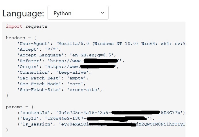 Paste into curl converter > python