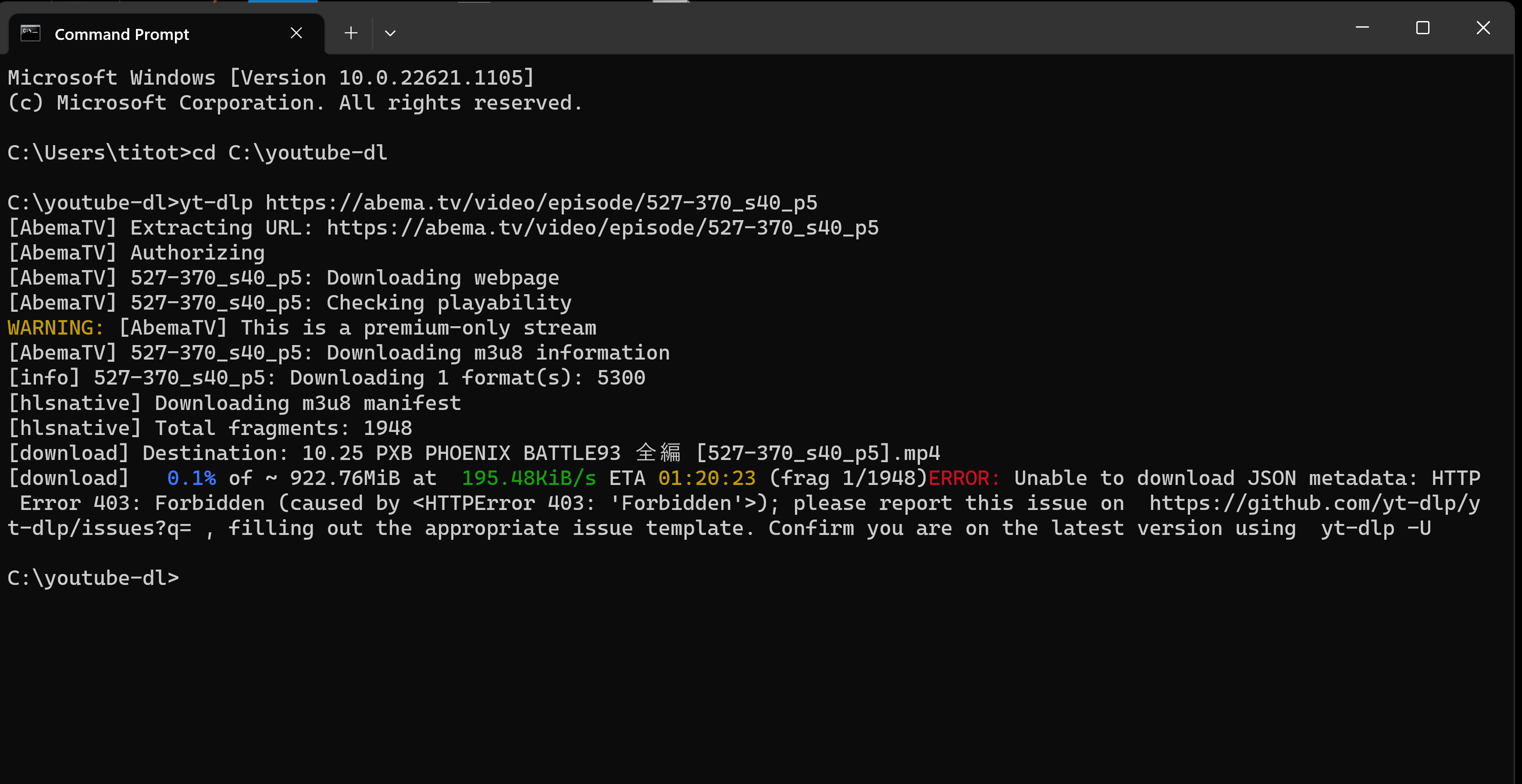 when i talk about extractor for abematv by yt-dlp, you need to add only video link, not m3u8 link