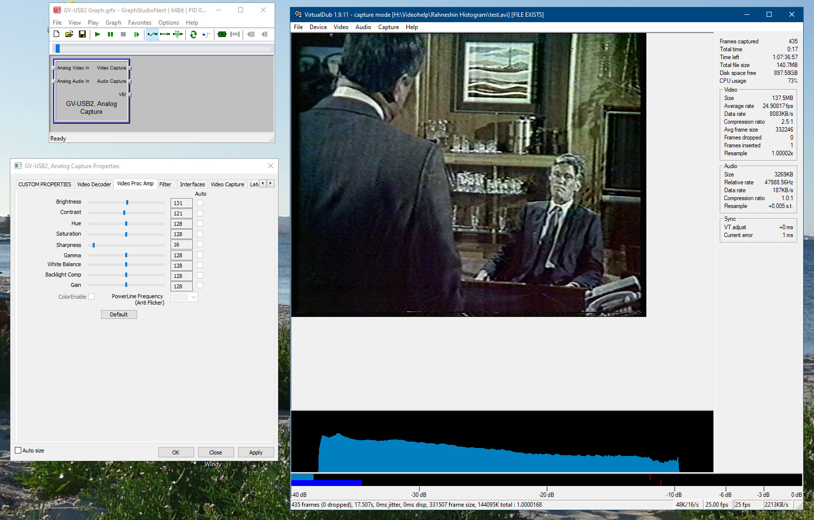 Yes, I looked at the thread you linked before, thanks. Have installed GraphStudio and am trying to learn how to use it. It is completely new territory for me and a little puzzling.Use jagabo and Sharc guidelines using GraphStudio in the other posts to set procamp wished settings for a capture with correct levels.