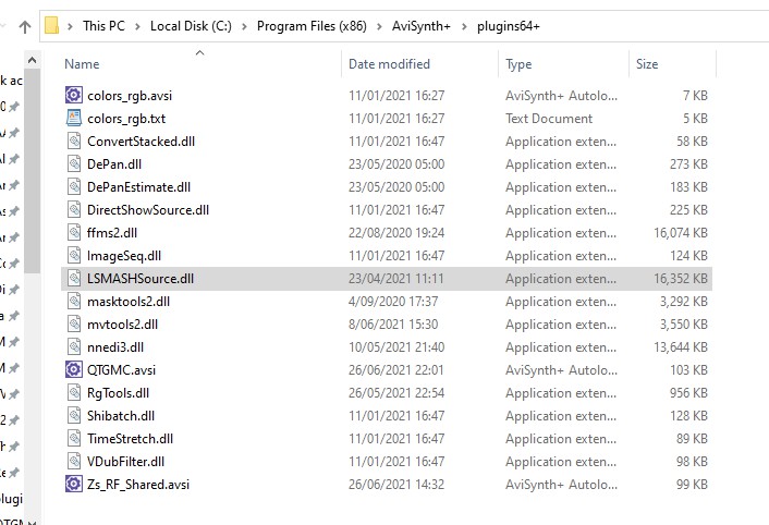 PluginDir2_5 (HKLM, x64): C:\Program Files (x86)\AviSynth+\plugins64