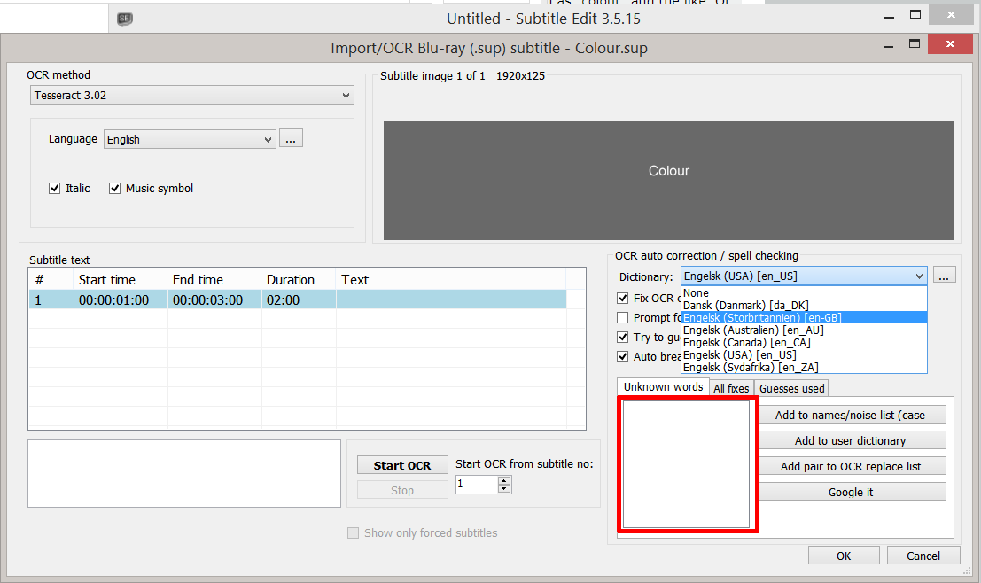 Does anyone know where I can find a United Kingdom dictionary/OCR file that's compatible with Subtitle Edit, please?