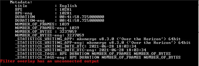 I know that it's unlikely that anyone who still has a gen 1 WD TV media player needs the information, but I used the code to convert x265 mkv video that had pgs subs, to x264 mp4 with overlay subs.