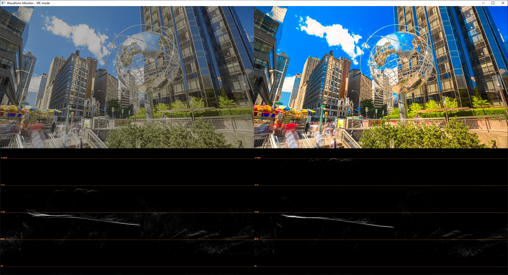 On the right, the clouds' white levels are so high that are clipping, on the left they didn't even reach 75% on the IRE scale.