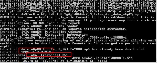 but second part is consists of 257 fragments... and final size it increases during the download... have you come to the end?