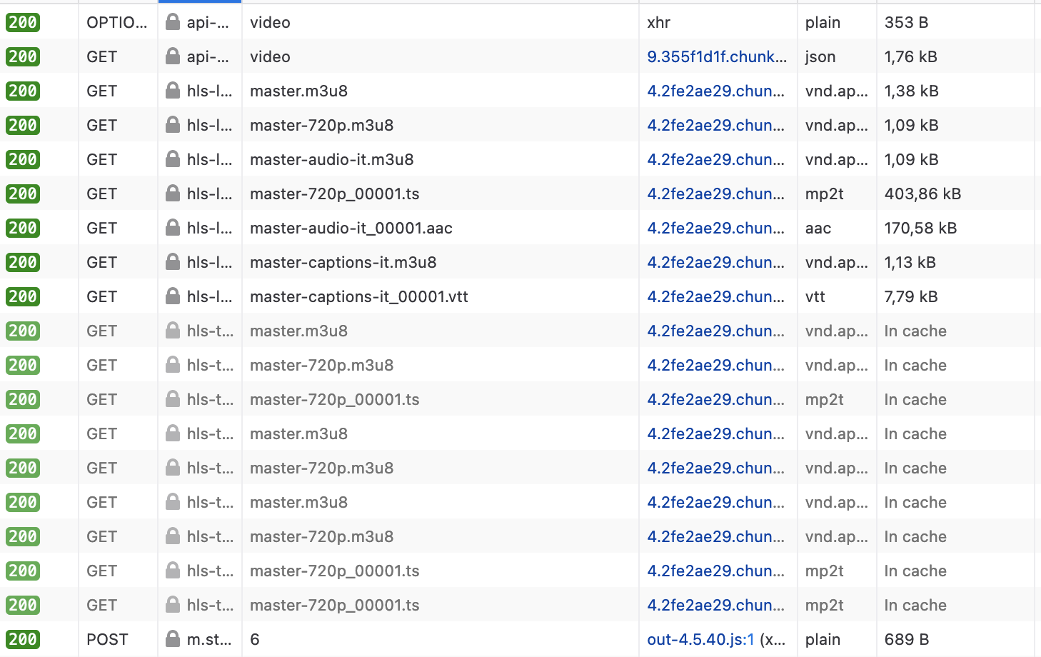 The first 2 links don't do anything. Then we have the master.m3u8 file that is the one I am interested in. Then we have smaller resolutions and various audio and subtitles file.