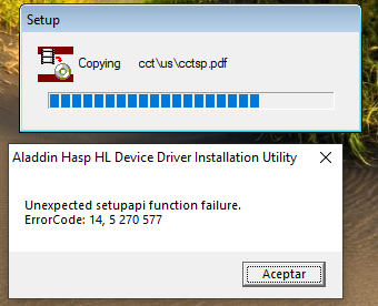 The Windows 10 installation of CCE SP got stuck in cctsp.pdf and a pop-up says: "Aladdin Hasp HL Device Driver Installation Utility. Unexpected setupapi function failure. ErrorCode: 14, 5 270 577". I ignored that, but indeed fails in DVD Rebuilder "- The encoder doesn't appear functional. - Aborting...".