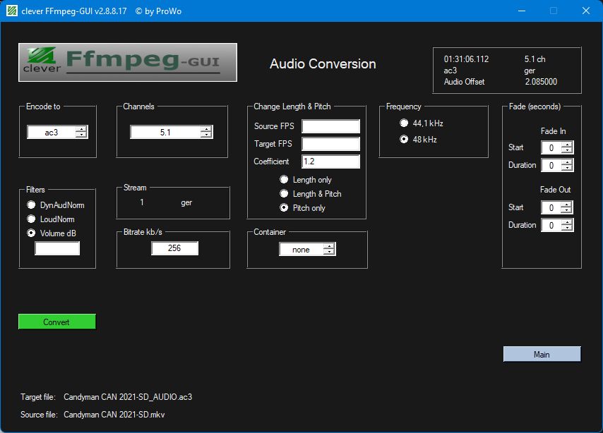 If done, click Convert Audio stream, Continue, type 1.3 in the coefficient field, select lenght only below, leave all other settings as they are, click convert.