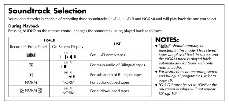 You should have started a different topic but to answer your question, as stated by Dellsham, S-VHS JVCs have selectable soundtracks. This is mine (a 5700):Do S-VHS VCRs have this annoying audio feature as well or can it be switched off like "edit mode off" for video? If so, does a S-VHS unit like the JVC HR-S7611 enable playing mono audio "as is"? The VCRshop has that model for sale.