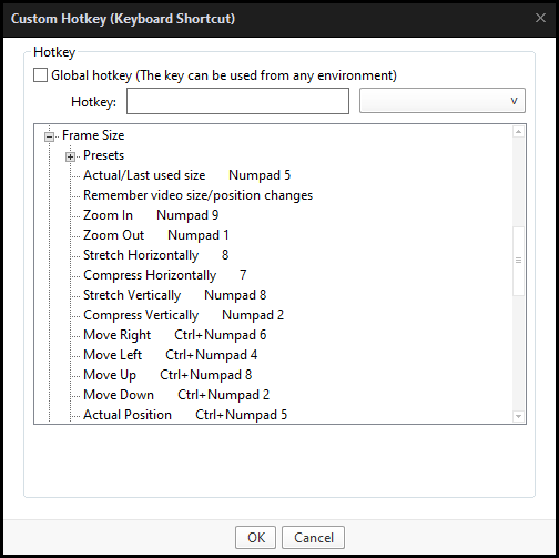 There was an option in Daum Pot Player to compress video vertically/horizontally by using dedicated numpad keyboard shortcut (2&8 4&6). How do I use it on shorter keyboard (13-14in)?