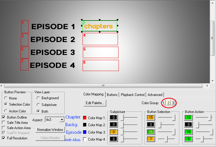 What I mean by that is because the buttons are overlapping, you would actually see that the chapter text is also activating along with an activation of episodes so you gotta match the colors and transparencies so that this is hidden.