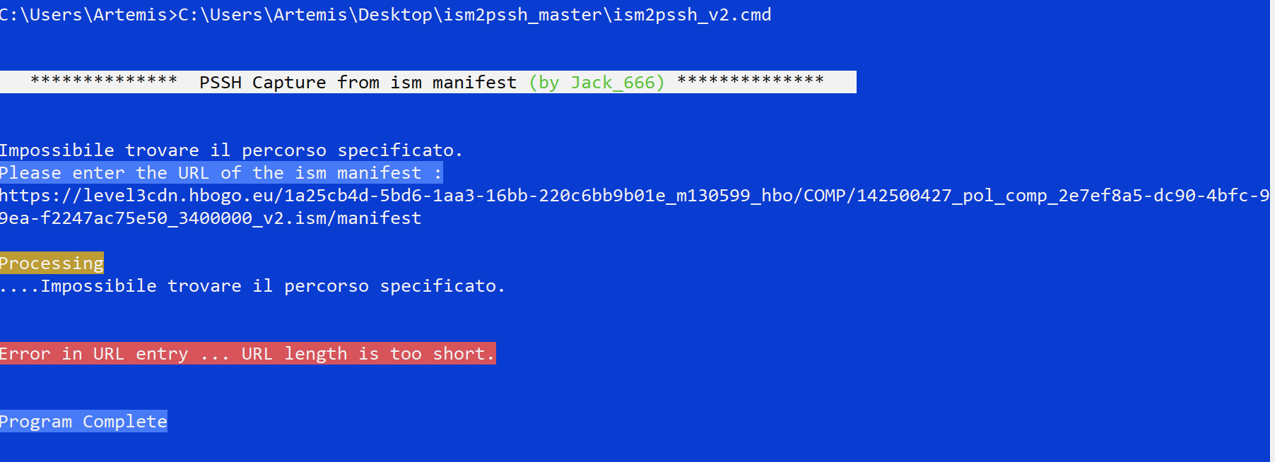 Even with trying to remove the ?indexMode from the end of the link, the script tells me "Error in URL entry ... URL must contain ism/manifest."
