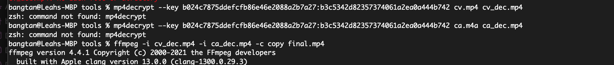 i tried to the do the mp4decrypt on my mac but i kept getting an error it works when i do it on my mac its in the folder