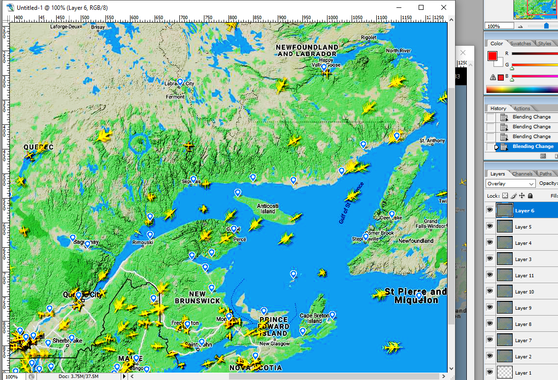 I'll also probably re-capture the whole thing with a higher resolution so that the places are smaller on the map themselves.