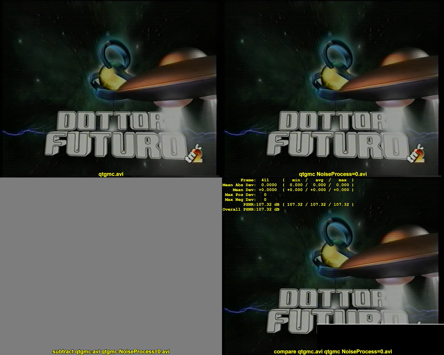 That was the reason for that "pause" at the beginning in the gif demo. Those first few frames have no motion. A perfect deinterlacer will weave() the 2 field to produce full quality image. QTGMC comes close, but very slightly degrades because of the additional processing . yadifmod+nnedi3 misses the top and bottom row (so does QTGMC default without border=true). Bwdif+nnedi3 is essentially perfect for the static sections, if it detects no motion correctly