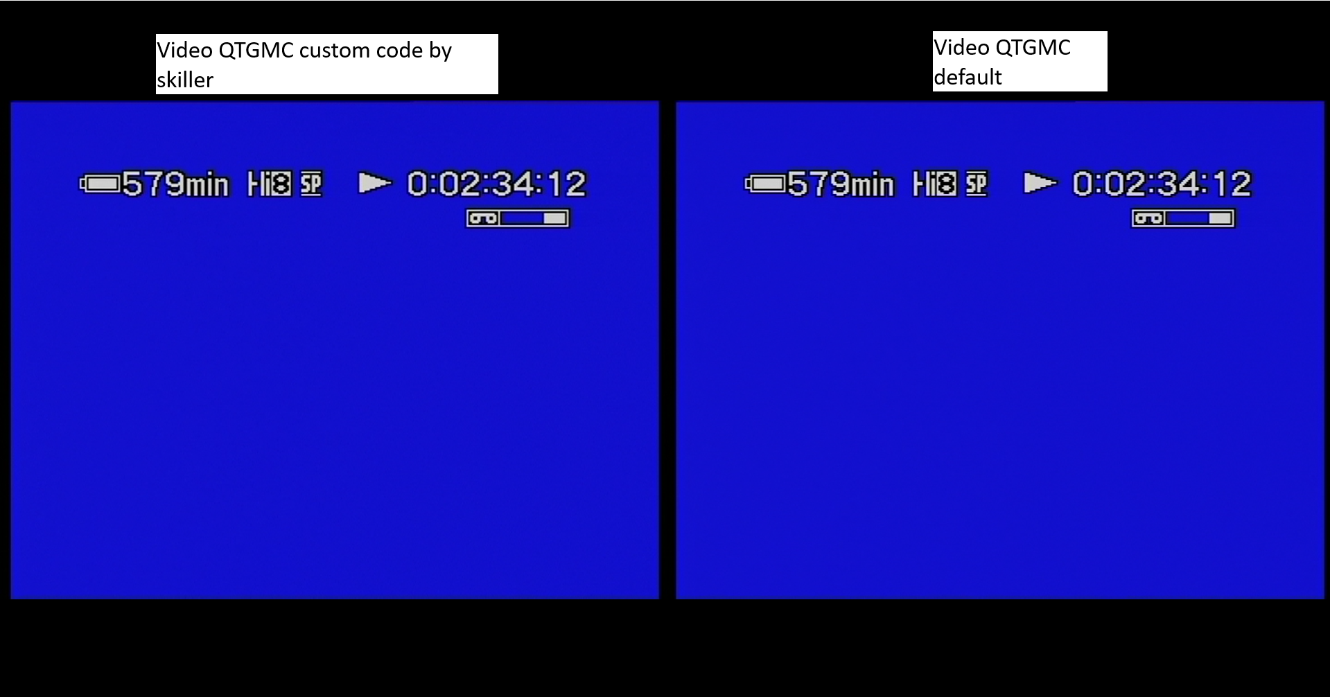 Here my results with my Hi8 XR video wich i captured with a Digital 8 camera to my PC and using Staxrip program, i compare the videos, the left is your code and the right is with the default settings that Staxrip applies: