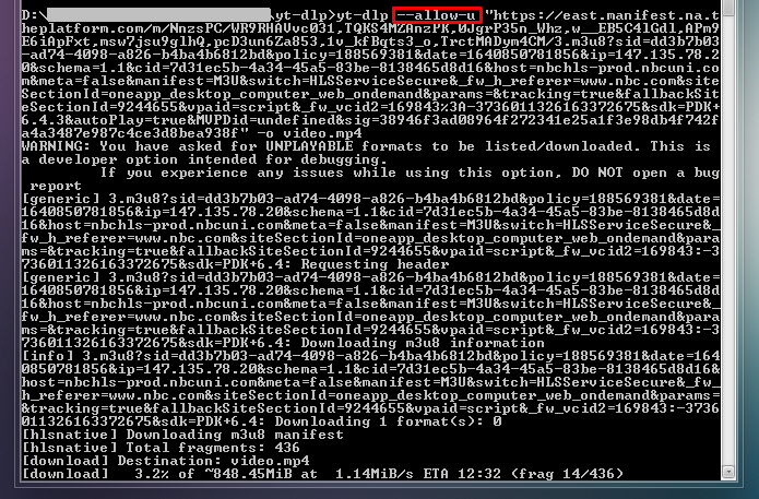 yt-dlp.exe --allow-u https://east.manifest.na.theplatform.com/m/NnzsPC/WR9RHAVvc031,TQKS4MZAnzPK,0JgrP35n_W...b822b1aa66cd0e