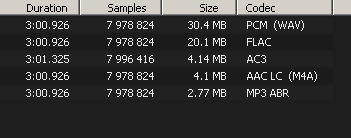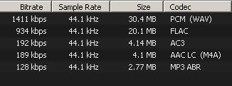 A quick example of the same CD audio track encoded at different bitrates and their corresponding file sizes.