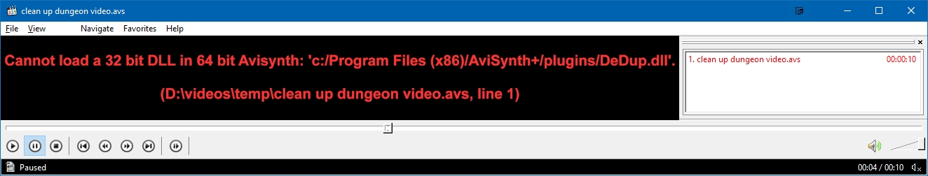 Now I'm very sure I went to the Avisynth 64-bit plugins page to get Dedup.dll so I'm stuck at this point.... should I uninstall Avisynth+ and just install the 32-bit version of the original Avisynth?