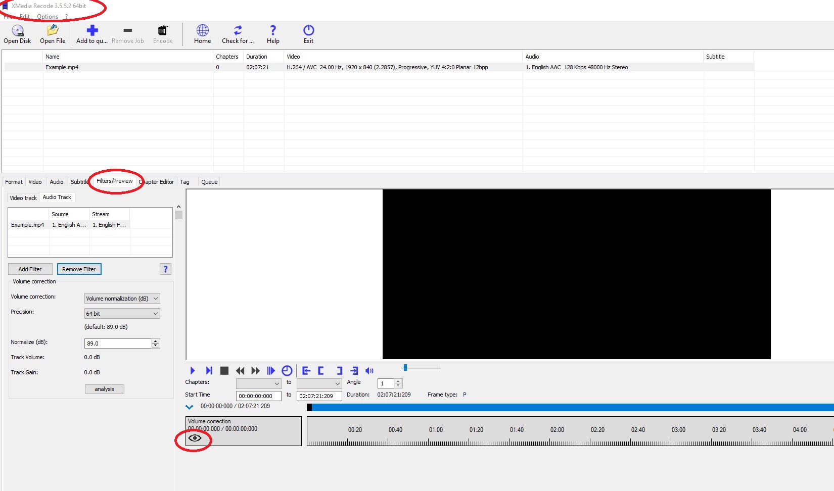Occasionally I will adjust a video's gain/volume using the "Filters/Preview - Audio Track - Volume Correction" filter. I "right-click" and then choose "enable" to turn it on. (I then analyse and "normalize" to the default of 89 db then run my recode). Everything comes out great.