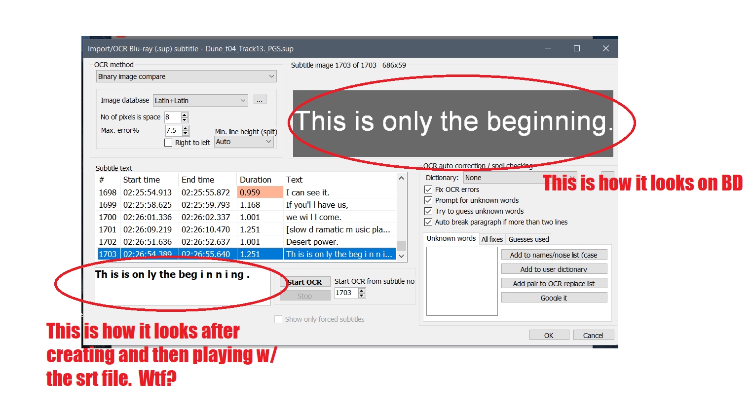 So I'm just backing up some BD's to media server and having issue's with the converted subtitle srt files to play alongside. This pic explains it easiest: