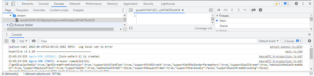 i am having trouble getting urls from a live streaming website called superlive.chat. i have tried to sniffing in the inspect elements network section but i could find no urls there ! as shown in this screenshots :