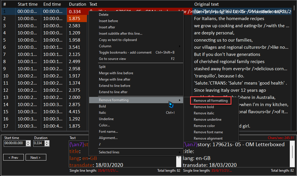 Subtitle edit, warning subtitle contains negative timing codes fix please