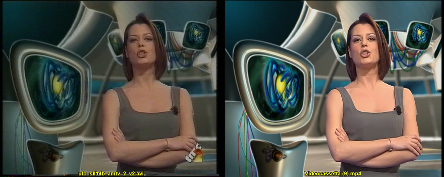 I have several SVHS recordings of a TV show broadcasted in the 2001 at low bitrare/low resolution (so low quality) and then captured with the classic workflow, and a video of the same show from a Digital Betacam captured with a BlackMagic workflow, and unfortunately compressed while captured with h264 codec.