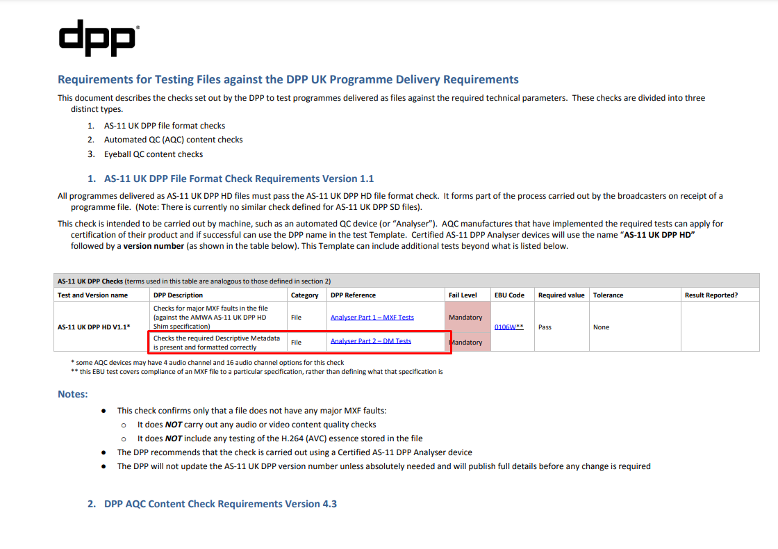 And I have difficulties with understanding AMWA / UK DPP -- AS-11 UK DPP HD Shim v1.1