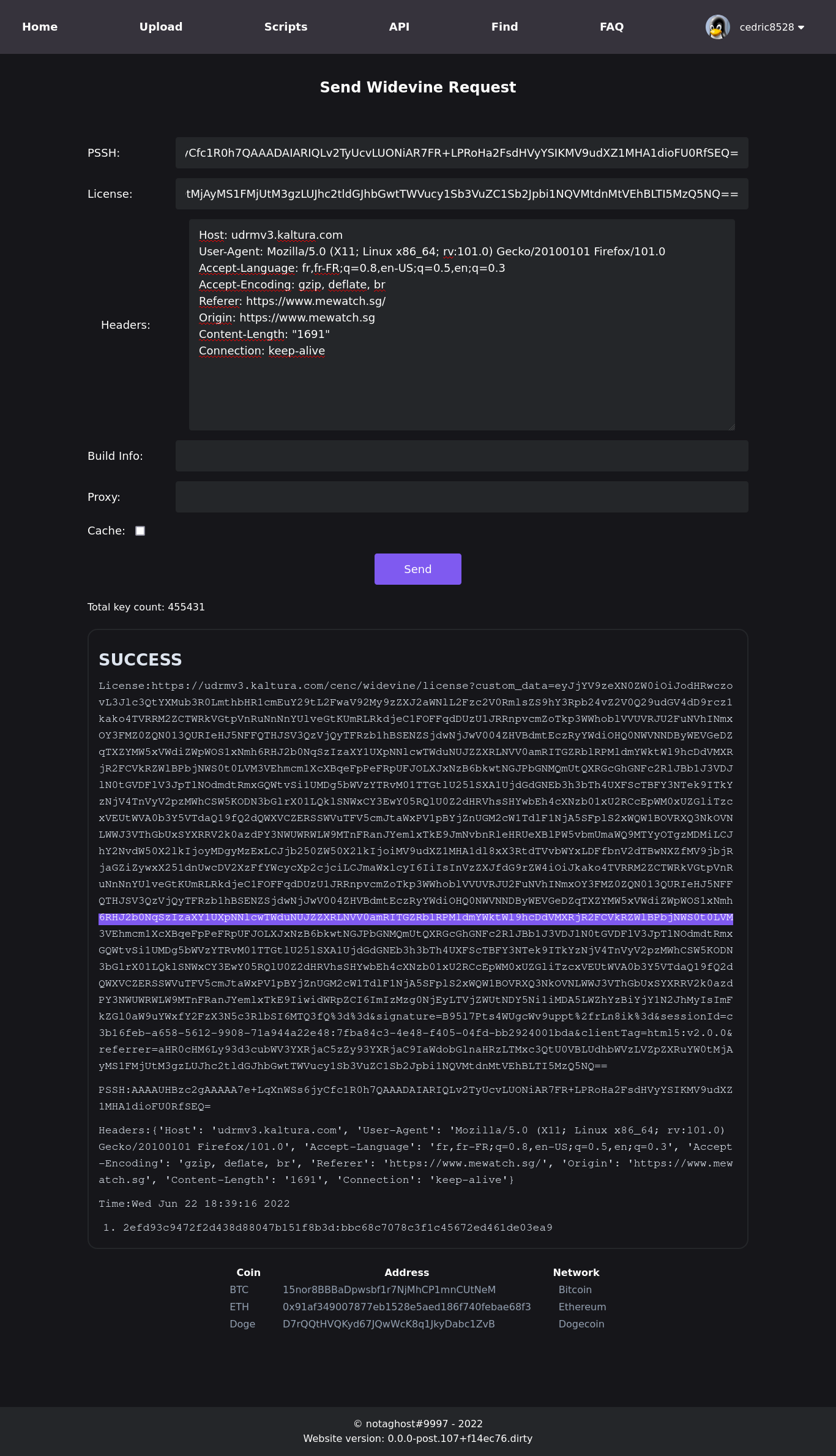 Code:Host: udrmv3.kaltura.com User-Agent: Mozilla/5.0 (X11; Linux x86_64; rv:101.0) Gecko/20100101 Firefox/101.0 Accept-Language: fr,fr-FR;q=0.8,en-US;q=0.5,en;q=0.3 Accept-Encoding: gzip, deflate, br Referer: https://www.mewatch.sg/ Origin: https://www.mewatch.sg Content-Length: "1691" Connection: keep-alive