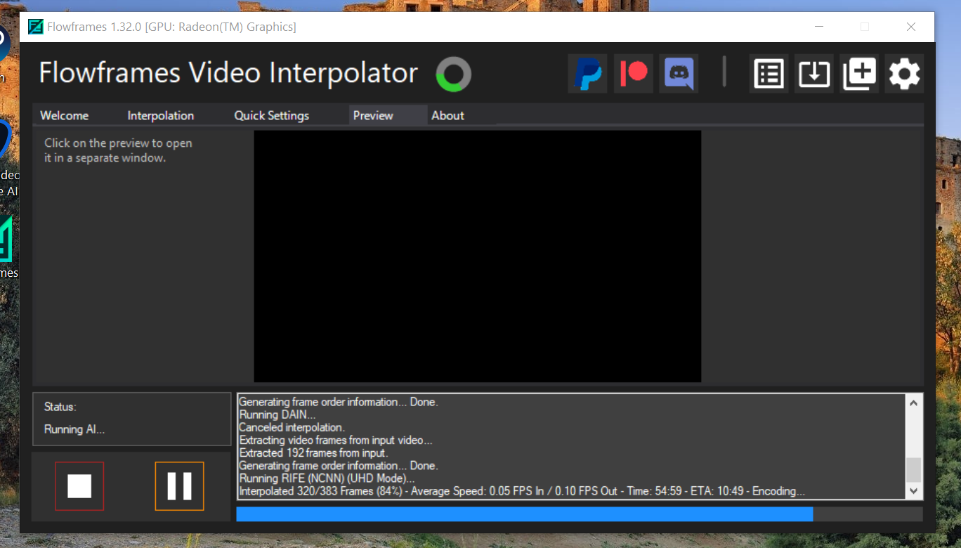 Hello, I currently have a problem where I'm trying to speed up my video with FlowFrames with RIFE and everytime I interlope and then get to the encoding part the process in the preview starts showing black frames and even after the process I would go to the video and see that it's a bunch of black frames flashing between regular ones.
