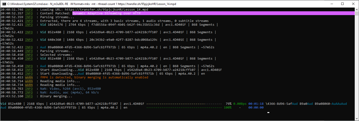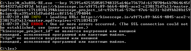 >N_m3u8DL-RE.exe --key 75395a425350585748325a646e73673d:6170704e6b7864645 f4544327a62493d https://kinescope.io/a9f71c89-b664-4045-ace2-c230171d7a13/master.mpd?expires=171103413...c8f154c1794044