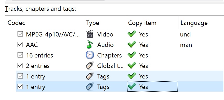 as you see there are tags, global tag, chapters, audio language and also there is audio track name and video track name if i click on the audio track and the video track. i need to remove those things