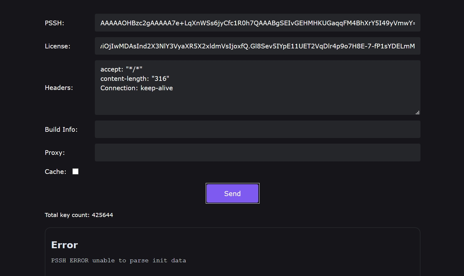 I copied the license URL + subsequent token, and these seem to be the only parameters that change every session, and then I headed on to getwv***.cc. The thing is, though, for the first file which I requested your help with, I did the same thing after you gave me the key, and getwv*** generated a key identical to yours. That's when I thought I had it. But then all the other attempts lead to no viable response, either 503 Service Temporarily Unavailable, or PSSH ERROR unable to parse init data. Is it because I'm not doing the base64 step?