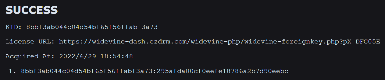 Key:Code:https://widevine-dash.ezdrm.com/widevine-php/widevine-foreignkey.php?pX=DFC05E