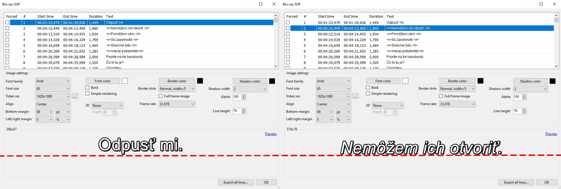 Subtitle Edit - Export to SUP: Lines are badly misaligned