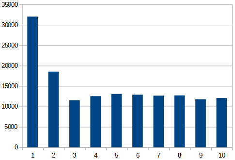 That's the size (in KiB) of a particular (but not atypical) short video encoded with the different presets. The bar on the left is ultrafast, followed by superfast, veryfast, faster, fast, medium, slow, slower, veryslow, and placebo. All at crf 18 with no other manual changes.